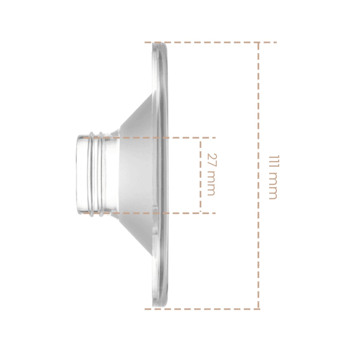 La copa de 27 mm es para pezones que, medidos en la base, luego de extraer o amamantar, rondan los 24 mm aproximadamente. Si necesitás ayuda para medir tu pezón, podés escribirnos: ¡te asesoramos para elegir el tamaño correcto! 🧡