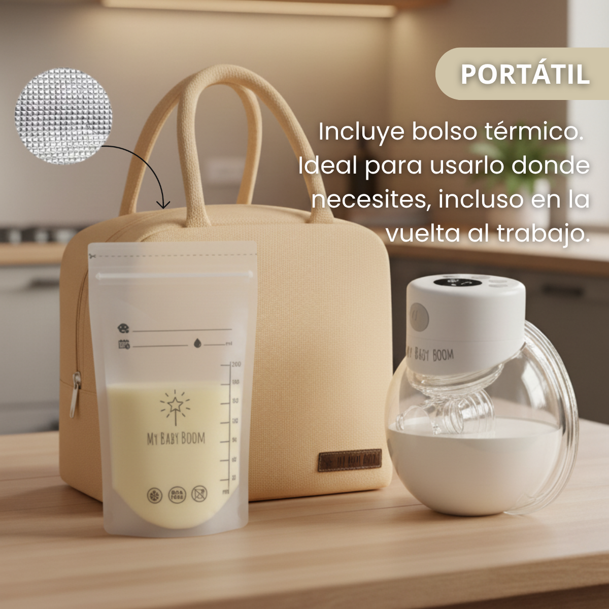 Combo Easy Go My Baby Boom | Extractor de Leche Materna Manos Libres + Bolso Térmico + 50 Bolsas Preesterilizadas